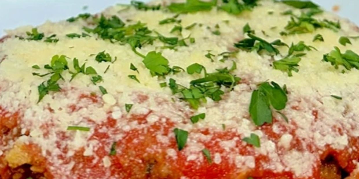 8. Una vez la carne que cocinó en la mantequilla esté lista, le va a añadir salsa roja de pasta o de pizza caliente y abundante queso parmesano. Decore con perejil finamente picado.